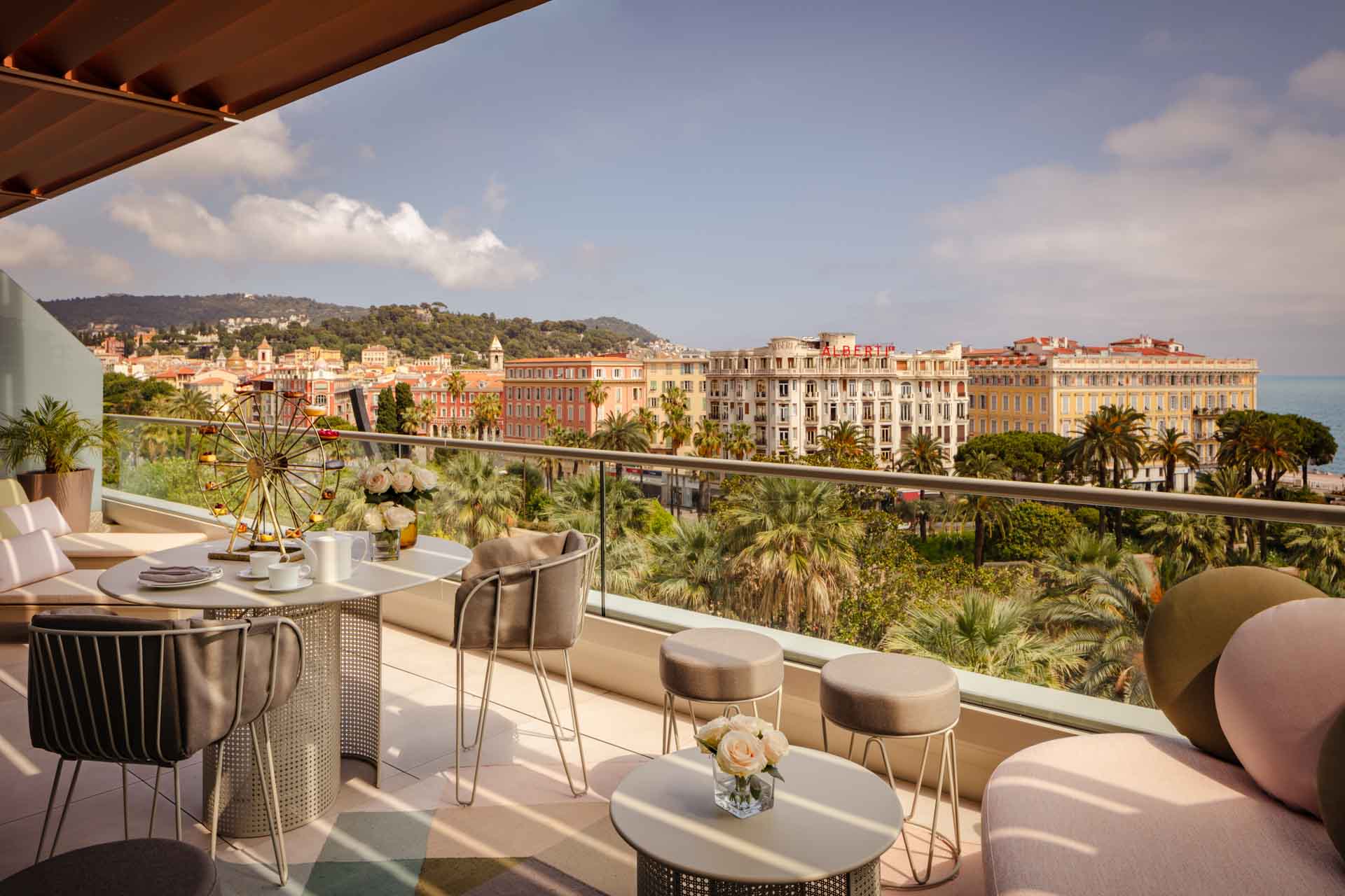 Derrière sa façade emblématique, l’Anantara Plaza Nice, entièrement rénové, s’inscrit pourtant dans l’histoire de la ville depuis 1848. Ouvert sous le nom d’Hôtel de France, avant de devenir le Plaza, il avait marqué en son temps une vraie rupture, devenant le premier hôtel érigé en bord de mer. La haute société fréquentait surtout les hauteurs de Cimiez où se trouve toujours l’aristocratique le Palais Victoria. Au fil du temps, la vie mondaine glisse vers le littoral. Sa façade sera entièrement redessinée en 1919 par Charles Dalmas, architecte du Palais de la Méditerranée. Fermé en 2018 pour une rénovation totale menée par le studio primé David Collins, l’architecte niçois Jean-Paul Gomis et TBC Interiorismo Studio, l’établissement rouvre quatre ans plus tard sous le nom d’Anantara Plaza Nice. Désormais exploité par le groupe Minor, il a été repensé de fond en comble pour renouer avec son statut d’adresse de référence.