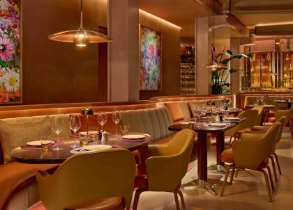 Très bien situé, puisqu’à deux pas de Covent Garden, le Henri est une table jeune (elle a ouvert à l’été 2024), qui déploie un cadre élégant, tout en reproduisant l’ambiance animée et relax d’un bistro parisien. On s’y régale d’une jolie carte signée Jackson Boxer, chef britannique qui a le vent en poupe outre-Manche, et qui sert ici une partition de classiques français revisités à la sauce British. Cela donne de beaux moments, comme les pieds de cochon frits en amuse-bouche, ici agrémentés d’une pointe de moutarde et de pruneau d’Agen – on plébiscite. En entrée, la betterave rôtie à la sauce béarnaise est une réussite, avec son joli mélange de textures. En plat, on oscillera entre le canard haché au poivre, convaincant, et la lotte à la bouillabaisse. En dessert, la crêpe Suzette arrive nappée de caramel bien doré, tandis que le trio de madeleines remanie les codes du sticky toffee pudding, pour un résultat gourmand. Le tout se déguste éclairé de bougies, présente un bon rapport qualité/prix, pour des quantités plutôt conséquentes. Seul bémol : le service en cuisine est un peu lent.