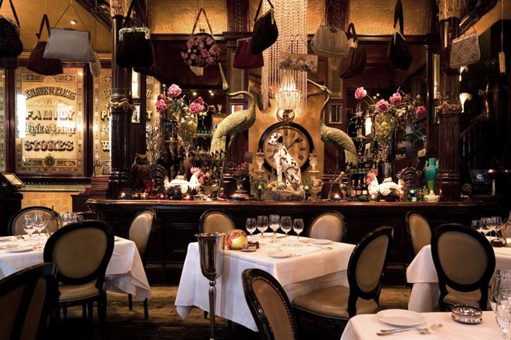 Son intérieur façon cabinet de curiosités a immédiatement propulsé cet ancien pub victorien de Shoreditch parmi les restaurants les plus extravagants de la ville. Tigre empaillé et singe cigare au bec sur le bar, têtes de girafe et d’antilopes au mur, sacs à mains vintage suspendus au plafond, fleurs en pagaille et fastueux lustres dépareillés, voilà qui donne le ton ici. Une décoration excessive et un univers fou soigneusement mis en avant par un éclairage réfléchi dans le moindre détail.