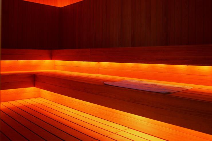 Si vous le pouvez, arrivez une heure avant l’heure de votre soin pour profiter des installations luxueuses du spa, en particulier de la piscine faite de granit chinois rouge et de son jacuzzi dont l’éclairage a été pensé pour sublimer la peau. Le parquet en bois brut foncé renforce l’impression de chaleur qui se dégage des lieux.