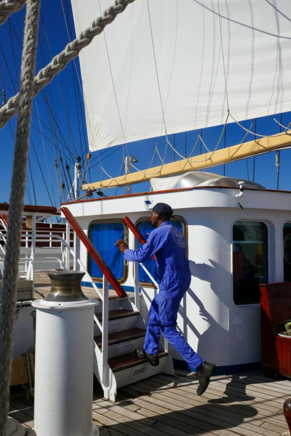 L'après-midi en mer est enrichie par un atelier de nœuds marins dirigé par un membre d'équipage, suivi d'une petite conférence du capitaine sur l'histoire des navires à voile et des clippers. Ceux qui ont choisi de faire la sieste à ce moment profitent du calme. Le dîner marque une fin en beauté avec un défilé de l'équipage – masseuse, équipes de ménage, cuisines, et sports – sous les applaudissements chaleureux des passagers, reconnaissants pour leur dévouement et leur travail acharné. On s’endort des images de voiles, de dauphins, de belles rencontres plein la tête, attendant avec impatience de larguer à nouveau les amarres.