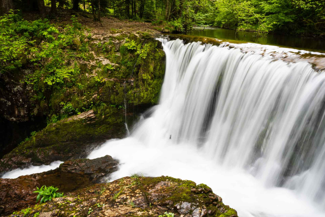 On profite d’être dans les parages pour se rendre à la cascade du Saut de l’Ognon à Servance, une chute d’eau renversante de 14 mètres dans un bois frais.