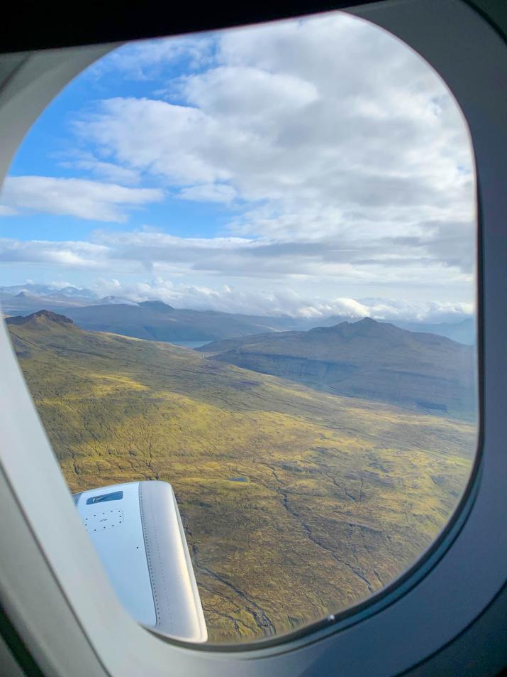 Depuis l’aéroport Paris-CDG, les Îles Féroé sont désormais à 2h40 de la France sans escale. C’est la compagnie aérienne nationale des îles Féroé, Atlantic Airways, qui permet un voyage rapide pendant lequel on aura le loisir d’observer le Royaume-Uni défiler sous ses yeux… si les nuages ne sont pas au rendez-vous ! À l’arrivée, on survole les îles du sud des Féroé — Suðuroy et Sandoy — avant de survoler le lac Leitisvatn, l’un des lieux les plus photographiés des îles.