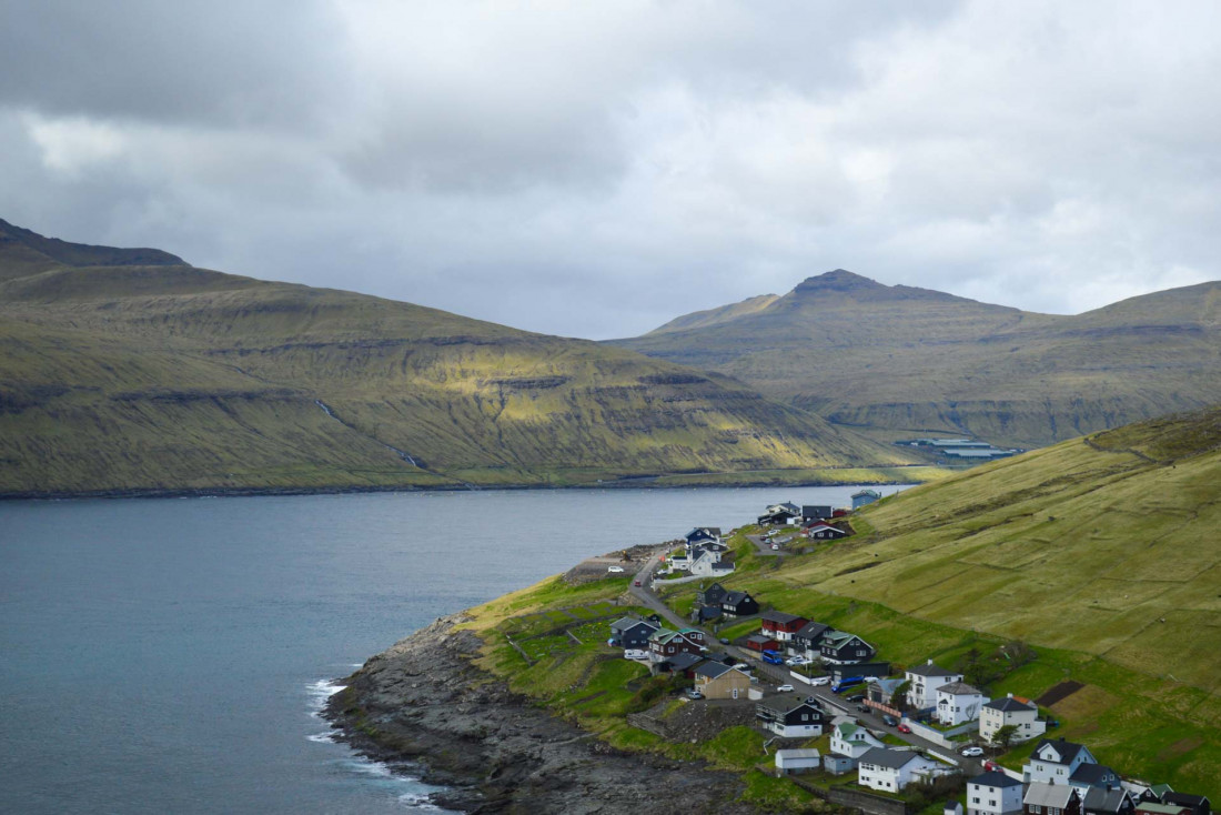 On arrive sur la côte au bout d’une heure de marche, et d’ici, les îles de Sandoy et Vagar sont visibles au loin, tandis que Hestur et Koltur dressent leurs sommets au-dessus de l'eau. Des moutons gambadent entre les rochers et nous regardent passer au loin. Après une ultime descente, on se retrouve à Kirkjubøur, un village minuscule aux maisons anciennes comptant plusieurs sites historiques : la Cathédrale Saint-Magnus, dont les ruines ont été datées autour de 1300, une ancienne ferme datant d'environ 1350 et toujours dans la même famille depuis le XVIe siècle, et l'église de Kirkjubøur, la plus ancienne des îles Féroé encore utilisée.
