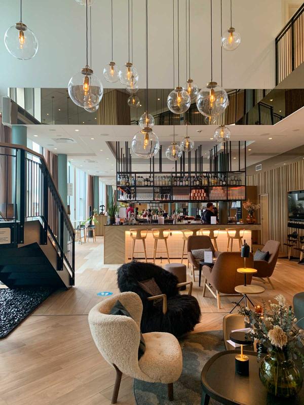 Situé en bordure de Tórshavn, l’hôtel Hilton Garden Inn est un vaste quatre étoiles de 130 chambres, moderne mais dont le toit couvert de gazon s’inspire des maisons traditionnelles. Les chambres sont vastes et lumineuses avec de grandes baies vitrées. Au rez-de-chaussée, vaste espace avec cheminée, bar et restaurant de bonne facture où est également servi le petit-déjeuner. L’hôtel se situe dans une zone commerciale, mais possède un grand parking très pratique pour sa voiture de location, et se trouve à 15 min à pied du centre de Tórshavn.