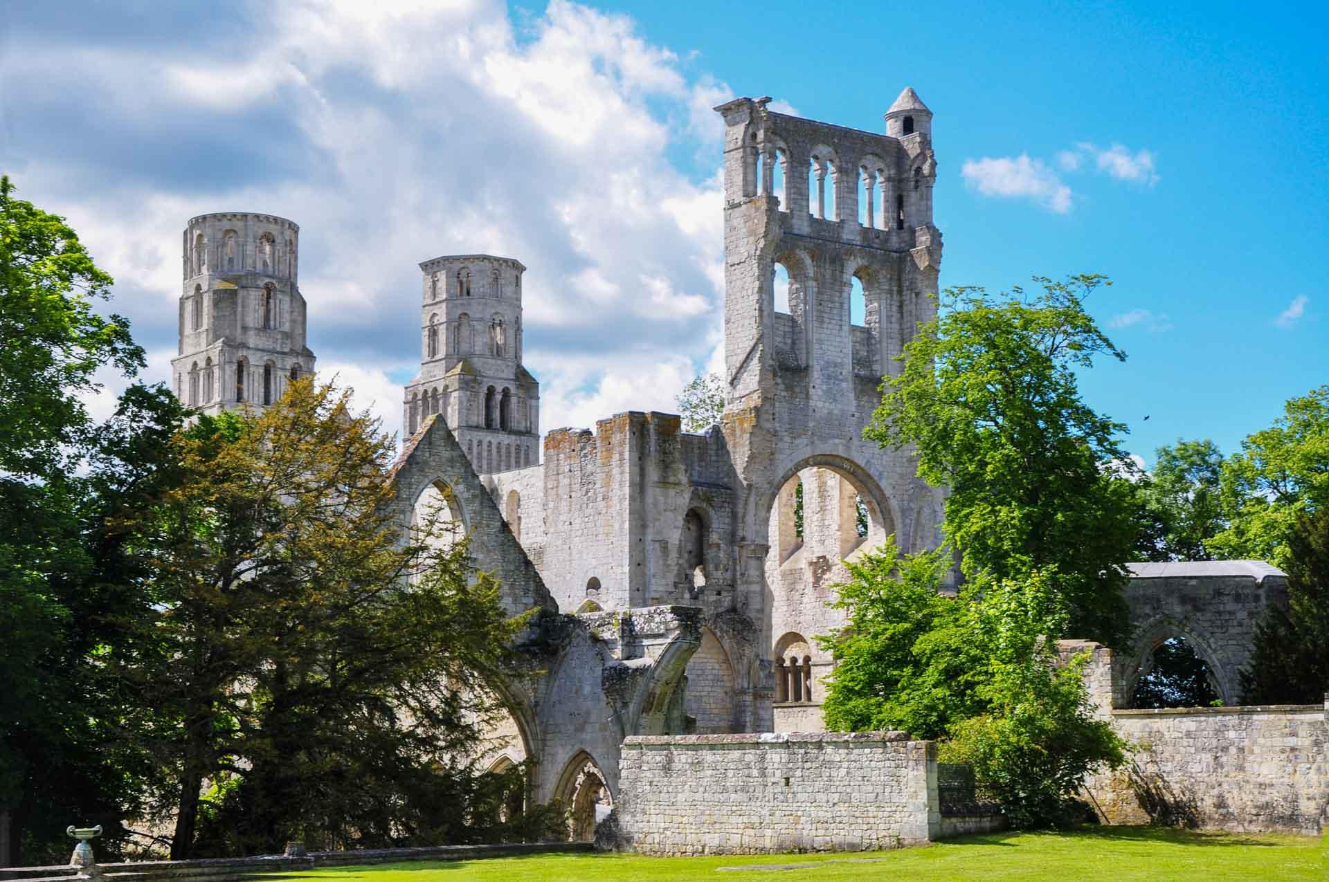 La silhouette romantique de l’Abbaye de Jumièges, à découvrir même par temps de pluie © Philippe Alès