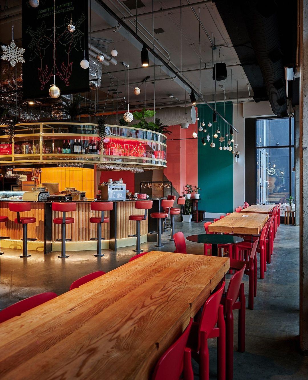 Entre les rôtisseries portugaises, les épiceries polonaises, les restaurants vietnamiens et coréens, les québécois typiques, on ne sait pas où donner de la fourchette. Chez Ratafia, pas besoin de choisir entre les multiples assiettes à partager et les dizaines de références vinicoles à la carte. Au comptoir ou à table, on se laisse guider le long d'une carte où tous les ingrédients sont locaux : champignons cultivés à Maisonneuve, omble chevalier et œufs de poisson élevés à Montréal... L'attention au détail est extrême, que ce soit dans la présentation des plats, et notamment des desserts qui sont de véritables œuvres d'art, première page du menu en cuir, sélection des vins à l'avenant.