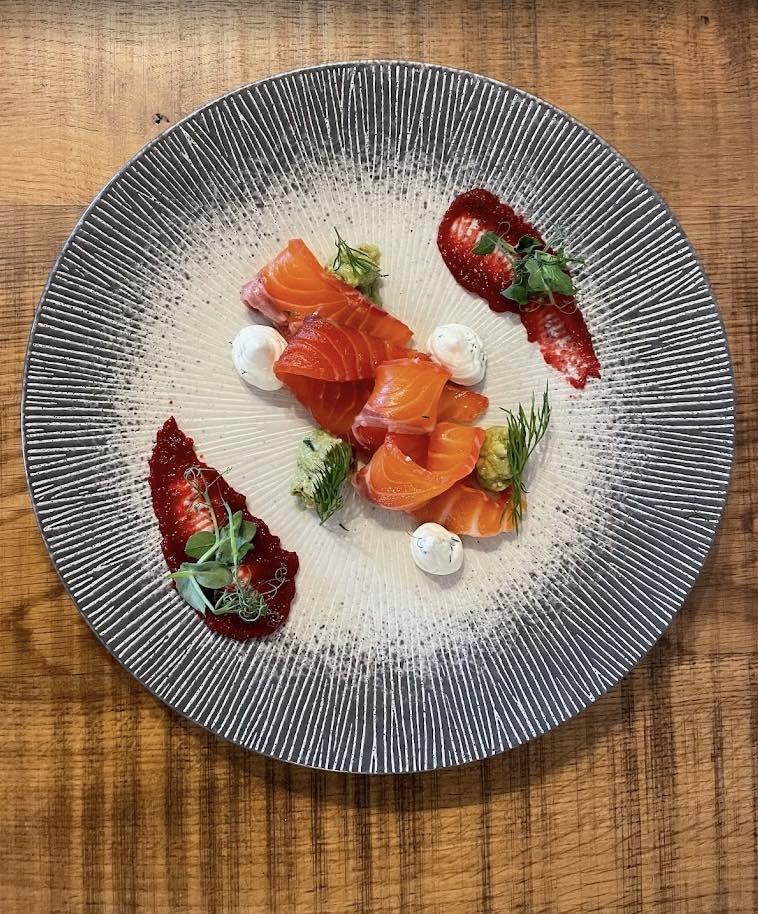 Retour à La Baule pour un dîner au restaurant de l’Hôtel Le Castel Marie-Louise, incarnant l’élégance intemporelle de ces demeures balnéaires bretonnes du début du XXe siècle. Lorsque l’on franchit le seuil de ce manoir, on est accueilli dans une salle à manger au style bourgeois classique où de grandes baies vitrées offrent des vues sur le parc arboré et la terrasse du restaurant. Aux commandes en cuisine, le chef Jérémy Coirier, enfant du pays, puise son inspiration dans les richesses de la région. A la carte, on retrouve des poissons et des coquillages fraîchement pêchés, comme la langoustine du Guilvinec ou le Homard breton.