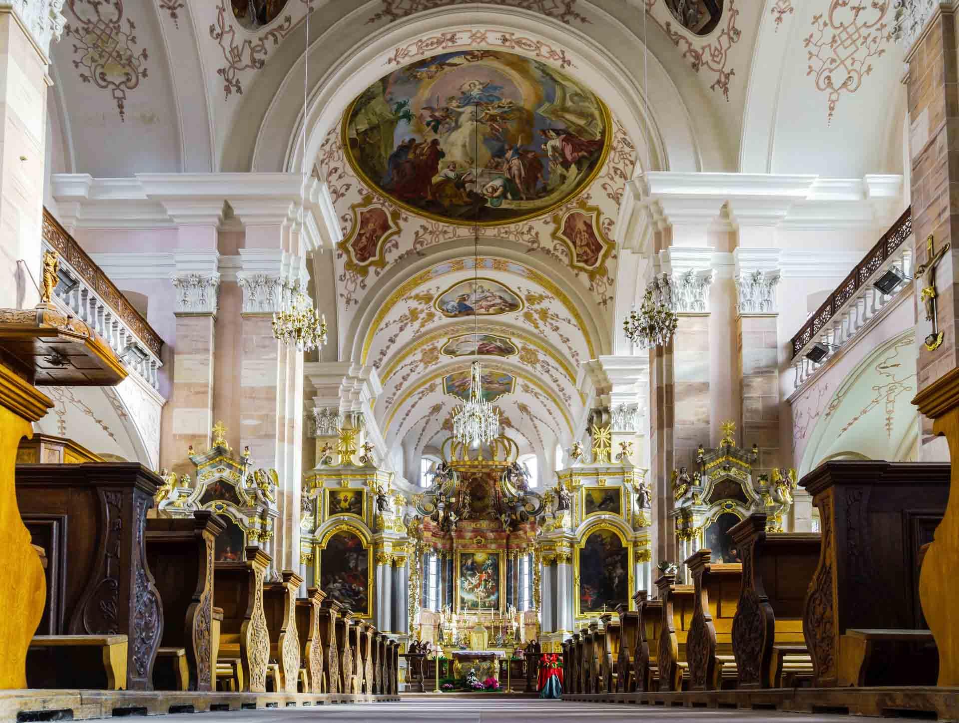 L’abbaye d’Ebersmunster et son intérieur baroque flamboyant © Alexander - adobestock