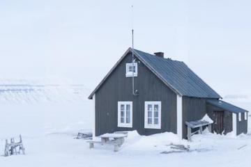 Nous reprenons la "route" rejoignant Sassendalen via Brentskaret et Eskerdalen. Il reste environ 12km à parcourir dans Sassendalen pour atteindre le lieu dit de Fredheim, en bordure de Tempelfjorden, juste à la jonction de ce dernier avec le plus vaste Sassenfjorden. La "villa Fredheim", ainsi qu'il la rebaptisa en 1935, fut construite entre 1924 et 1927 par le légendaire trappeur Hilmar Nøis surnommé "roi de Sassen". Ce dernier hiverna pas moins de 38 fois au Spitzberg dont la moitié à Fredheim. Aujourd'hui la maison est entretenue par le gouvernement local et utilisée pour loger des scientifiques ou des invités officiels.