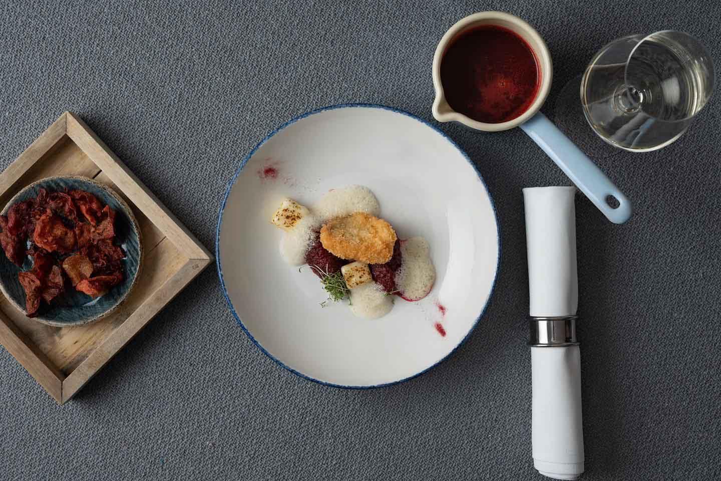 Le restaurant du Blaue Gans fait écho cet hôtel d’Autriche. La table est contemporaine, ancrée dans le patrimoine. Elle célèbre les goûts de l'Autriche dans une simplicité élégante, classique et chic : Tafelspitz (bœuf mijoté dans un bouillon, servi avec un mélange de pommes hachées et de raifort), Wiener Schnitzel aérienne, incontournable Topfenknödel à base de fromage blanc, Powidldatschgerl (crêpes fourrées à la confiture). L’endroit est plébiscité pour sa cervelle de veau frite, son jarret de cerf tout aussi délicieux, son émincé de foie de veau accompagné d'un pinot noir autrichien. La carte des vins de cette bonne adresse de Salzbourg est enthousiaste.
