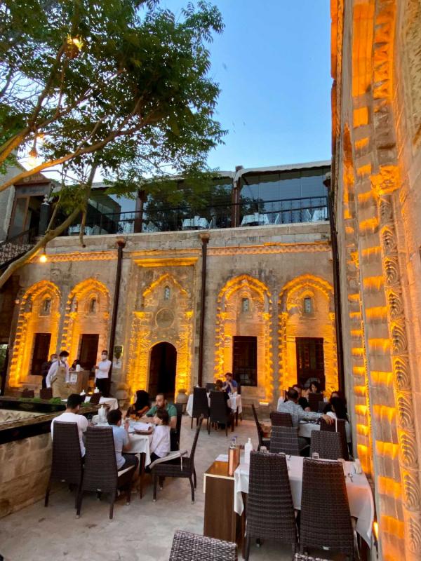 Aménagé dans un konak datant du Moyen-Age et superbement éclairé le soir venu, le restaurant Bağdadi conserve cette atmosphère historique typique de Mardin. Les intérieurs voûtés sont parés de pierre de taille, de couleurs vives et de tissus soyeux. On a l’impression de dîner au cœur de l’Histoire du Moyen-Orient, quelque part entre Perse et Arabie. Plusieurs salles, salons privés ainsi qu’une grande terrasse animée avec une vue royale sur la plaine de Mésopotamie s’offrent aux visiteurs. L’accueil est courtois, l’atmosphère décontractée et agréable malgré le service en uniforme. La nourriture traditionnelle est présentée avec soin. On déguste les yeux fermés les mezze maison, l’épaule d’agneau confite ou les côtelettes grillées qu’on accompagnera d’un raki ou de vin rouge syriaque de belle facture. Selon Yonder, le restaurant le meilleur et le plus chic de Mardin. Tout proche du musée de Mardin et de la place principale.