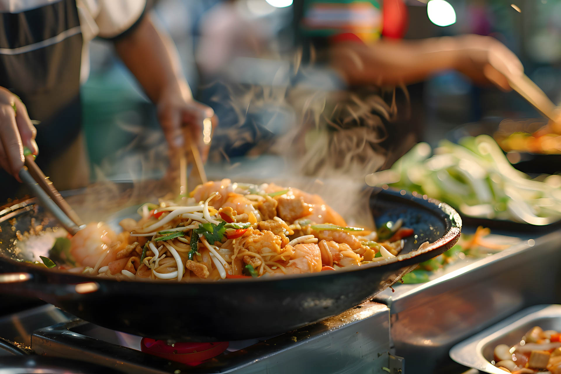 Aujourd’hui nous dédions notre matinée à l’apprentissage de la préparation de pad thaï dans l’école de cuisine de l’hôtel. Dans une maison en teck thaïlandais, un espace studio a été conçu par le célèbre architecte Bill Bensley, pour apprendre à faire des bons pad thaï et les déguster. Après le cours du matin, un temps de dégustation des mets cuisinés est à prévoir, il faut compter environ trois heures de préparation.