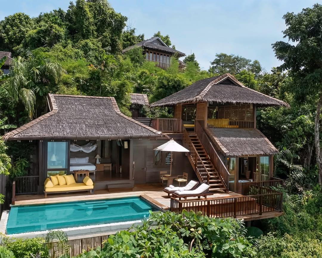 Niché sur l’île paisible de Koh Yao Noi, au cœur de la baie de Phang Nga, le Six Senses Yao Noi redéfinit l’idée du luxe en Thaïlande. Cet hôtel intimiste propose 50 villas somptueuses aux toits de chaume, chacune dotée d’une piscine privée et d’une vue à couper le souffle sur l’océan. Le cadre naturel, entre plages immaculées, mangroves et collines verdoyantes, offre un véritable sanctuaire de tranquillité. Nous avons choisi de séjourner dans la spacieuse villa Hideway Pool avec sa piscine à débordement privée et sa terrasse donnant sur une plantation d’hévéas. On adore également l’Ocean Pool Villa avec sa vue imprenable sur la baie de Phang Nga, qui offre aussi un vaste espace de vie et une piscine.