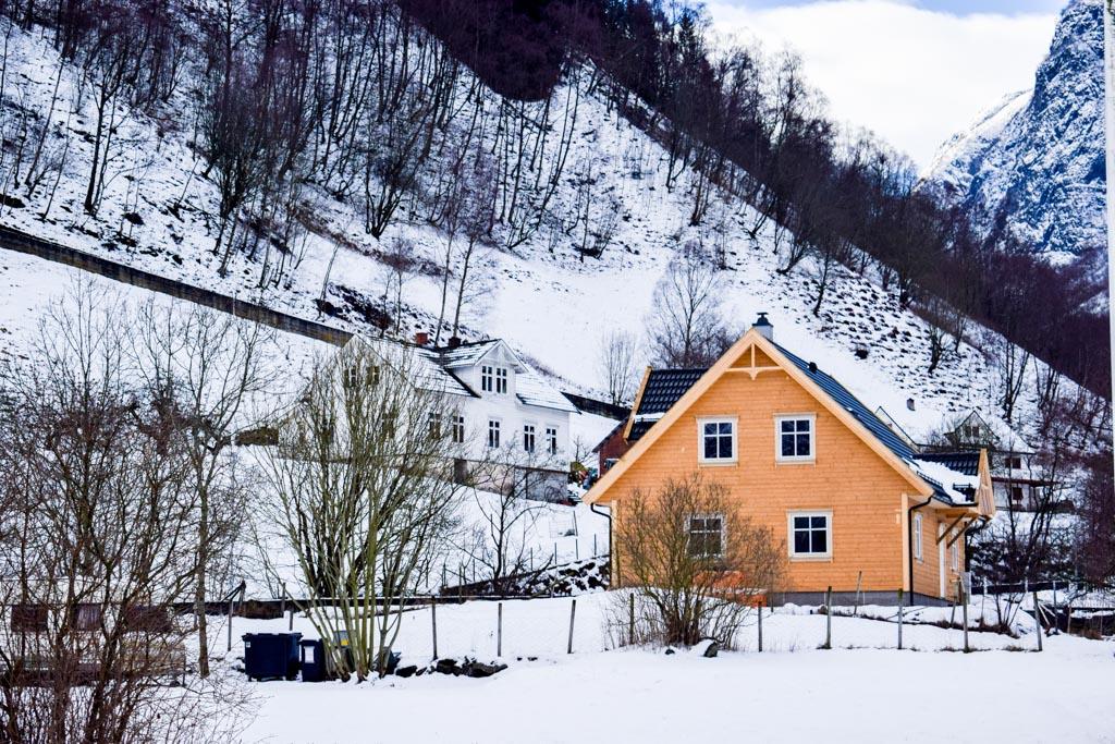 ... qui offre une vue à couper le souffle sur le fjord et le village d'Aurland en contrebas