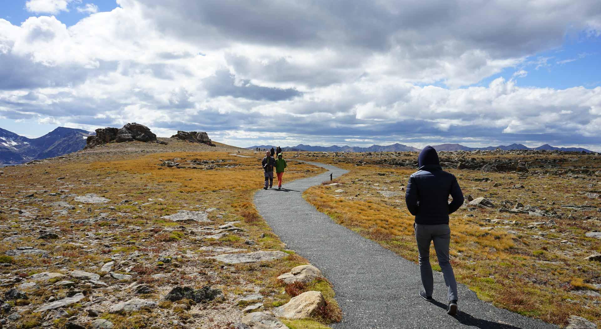 Si vous ne devez vous arrêter qu'une fois pour vous dégourdir les jambes, faites-le ici ! Cette balade d'un niveau facile (1,6km aller-retour) est l'un des incontournables de la visite du Rocky Mountain National Park. Elle vous emmènera à son sommet, à plus de 3,700 mètres, d'où vous aurez une vue à couper le souffle sur les sommets environnants des Rocheuses, dans cette zone du parc tellement haute que plus rien ne pousse à part... la toundra. N'oubliez pas que l'endroit est particulièrement exposé aux vents, sortez couverts !