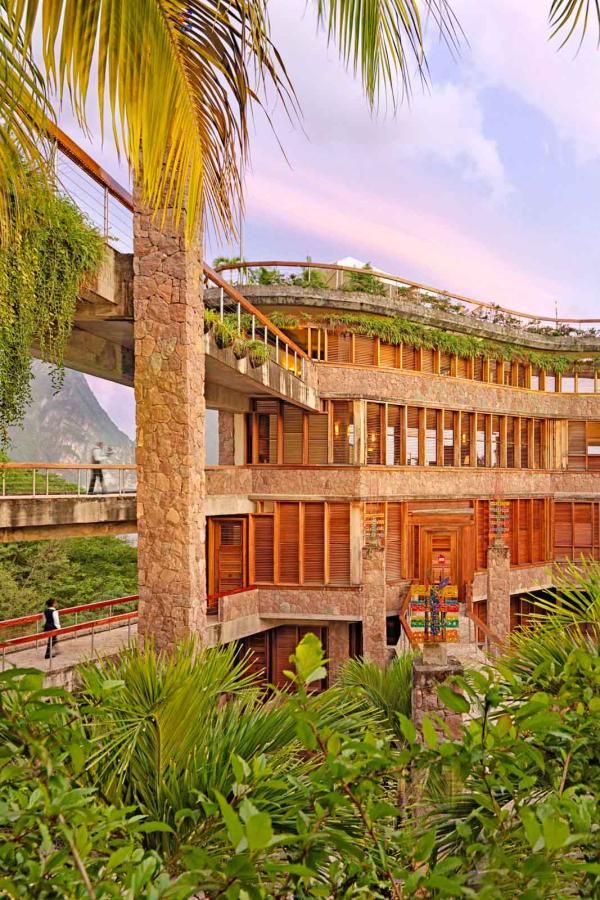 D’autres hôtels à Sainte-Lucie ont adopté une philosophie similaire, avec un cortège d’initiatives qui a valu à certains la certification Green Globe, tel le Ladera Resort. Outre des actions en faveur des locaux, la Ladera Green Team, menée par Eustace, champion de la durabilité depuis 30 ans, anime un atelier de création de meubles et sculptures, tandis que Ray supervise le jardin bio du restaurant. Ici pas bouteilles en plastique. L’eau de source est conditionnée dans un carton recyclable fabriqué à partir d’arbres et doté d’un bouchon à base de canne à sucre.
