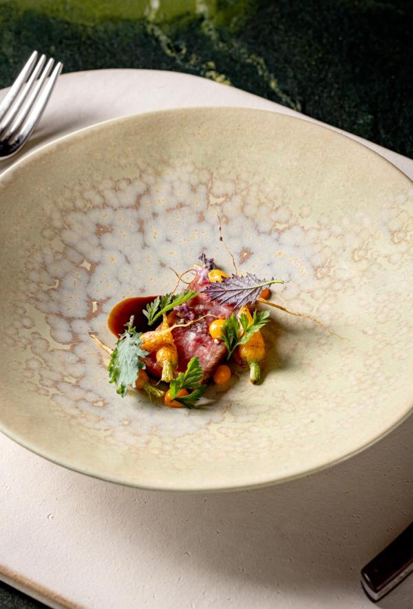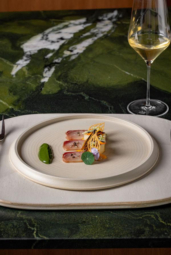 Canard de Challans et asperge verte au restaurant étoilé Racine © JustinDeSsouza