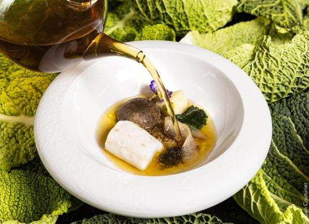 Adepte d'un locavorisme saupoudré de ses voyages et d'une bonne dose d'expérimentations, la cuisine unique de Florent Pietravalle, sérieux prétendant à une seconde étoile Michelin, est à découvrir à la table gastronomique de l'hôtel La Mirande à Avignon.