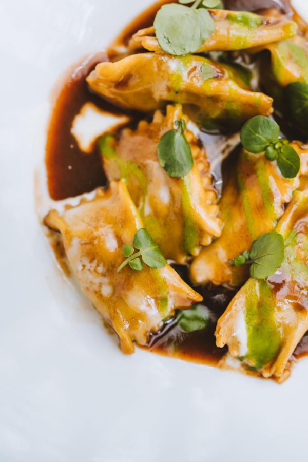 Le tartare de betterave, délicatement assaisonné, se distingue par son équilibre et son acidité maîtrisée, avec du kaki et du basilic. Viennent ensuite les pâtes fraîches, véritables signatures de la maison : raviolis farcis au ragoût de poulpe et au jus profond ou tagliolini à la truffe nappés d’une sauce enveloppante, chaque assiette témoigne d’un travail précis et gourmand. À noter que les végétariens et végétariennes s’en donnent à cœur joie tout au long du repas, à la différence de certaines adresses où la séquence des pâtes est le point d'orgue pour eux.