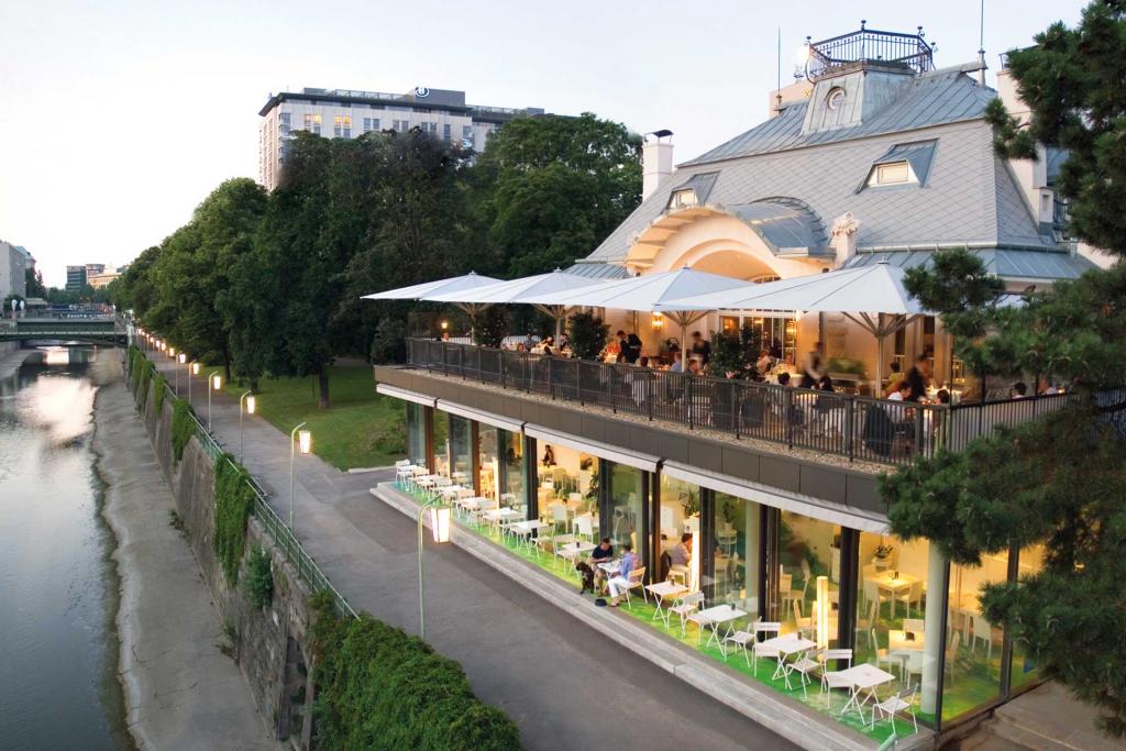 Posé sur le canal du Danube en lisière du 1er arrondissement viennois (à seulement 10 minutes de marche de la cathédrale Stephansdom), ce bâtiment rétro-futuriste aux allures de navire a réussi à s’imposer comme l’un des spots viennois « à la mode » s'inscrivant dans le temps.. Les vues sur l’eau et le quartier de Leopoldstadt, le décor d’inspiration vintage, la cuisine gourmande puisant ses racines dans la diversité des gastronomies européennes (l’Italie et l’Autriche tiennent le haut du pavé ici) et l’atmosphère branchée (en particulier le soir) font de ce restaurant une valeur sûre de la scène culinaire viennoise.