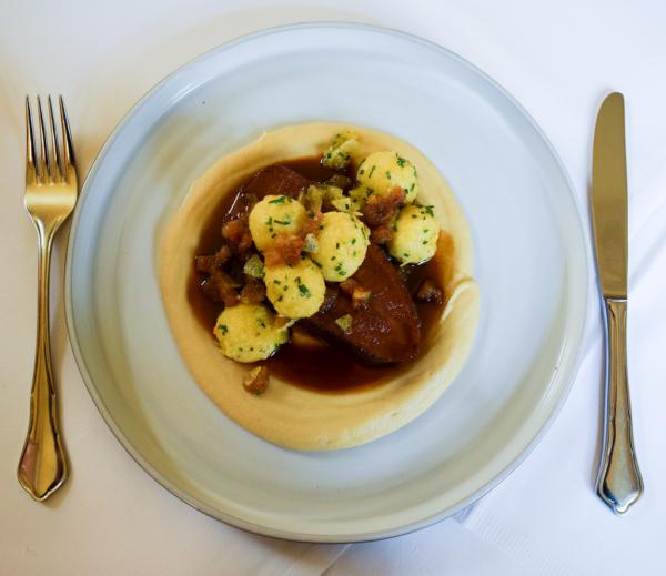 Dans le tranquille quartier résidentiel de Servitenviertel (c’est ici que Sigmund Freud avait élu domicile avant de fuir l’Autriche en 1938), le restaurant Servitenwirt ne paye pas de mine. Avec son look d’auberge autrichienne traditionnelle et sa clientèle de quartiers multi-générationnelle, difficile d’imaginer que l’on va trouver ici l’une des assiettes les plus intéressantes de Vienne. C’est sans compter sur le talent du Matthias Eichblatt qui œuvre en cuisine pour proposer des déclinaisons solides des éternels classiques autrichiens (Wiener Schnitzel, goulasch…) aux côtés de plats nettement plus modernes sur la forme, toujours aussi gourmands sur le fond comme cette formidable épaule de bœuf, mijotée 48 heures et servie avec des boulettes de pomme de terre, du persil et des cretons de bœuf. Rien de très sexy sur le papier mais l’exécution parfaite du plat, gustativement et esthétiquement, garantit un vraiment moment de plaisir culinaire. Le reste de la carte est à l’avenant, mélangeant allégrement influences rustiques et touches contemporaines. Une très jolie surprise.