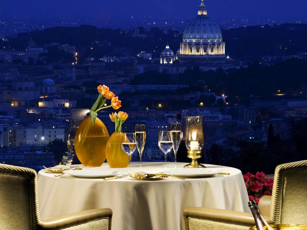 Vue sur Rome depuis le restaurant trois-étoiles La Pergola © Rome Cavalieri