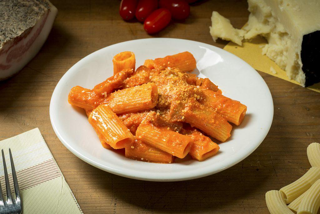 Culture générale : quelque peu sous-cotée par rapport à sa cousine la carbonara, l’amatriciana est pourtant l’une des spécialités de Rome. Composée de guanciale (joue de porc), pecorino et tomate, c’est le plat signature de la maison depuis 1870.