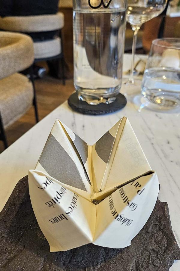 Si le cadre est très atypique, il se révèle des plus chaleureux, tout comme l'accueil qui nous est réservé. Terrine maison au comptoir, cocktails ou verre de vin, vue sur le splendide passe en onyx de la cuisine ouverte, les caves à vins et celles d'affinage. Puis, on passe au restaurant, sous les voûtes du fort, dans un décor tout en pierres apparentes, tons doux, jolis bouquets et lumières tamisées. Le service est jeune et pro à la fois, très souriant et le rythme des interventions comme son propos est au bon tempo.