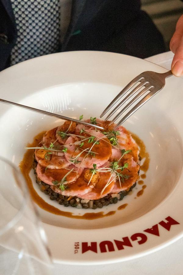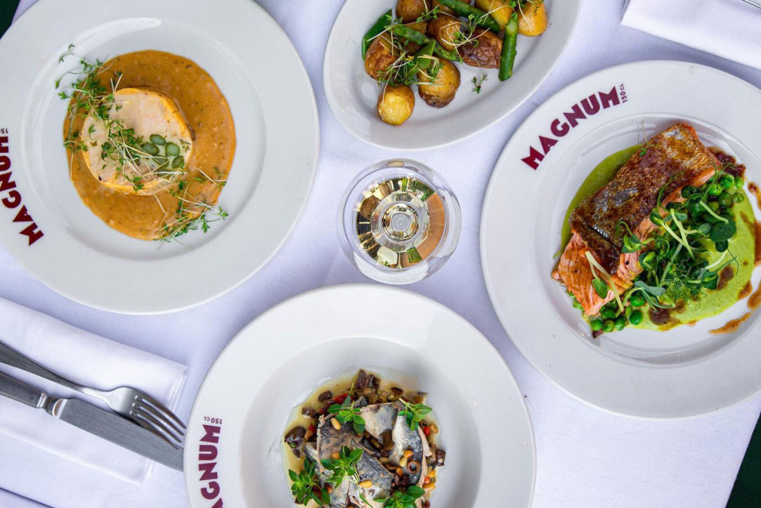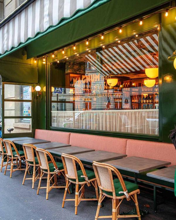 Le chef Matthieu Garrel, Breton fort en thème et fort en gueule, qui tient la barre de son restaurant à Paris Bélisaire depuis plus de vingt ans dans le 15e arrondissement, s'est mis en tête de franchir la rive et un cap avec cette deuxième maison. En effet, s'il en signe la carte, ce « Maître Cuisiniers de France » 2014 est aujourd'hui dans la transmission et place en cuisine son disciple Arnaud Gatard, à qui il rend malgré tout visite une fois par semaine. Comme on ne change pas une formule qui gagne, on retrouve chez Magnum 150cl la même cuisine « bourgeoise mais pas que » qu'au Bélisaire. Sauf qu'ici, on se joue un peu plus des codes, avec des entrées à tapasser et des plats à partager. Des recettes de toujours, gourmandes, réconfortantes, parfaitement sourcées, juste mises au goût du jour. Il n'en faut pas plus pour être comblé.