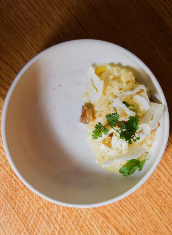 Le risotto de céleri-rave ensuite avec ses lamelles de châtaignes et son croustillant de riz montre également l’aisance de David Toutain dans le domaine végétal, sa capacité hors norme à faire du légume un produit véritablement attrayant au centre de l’assiette.