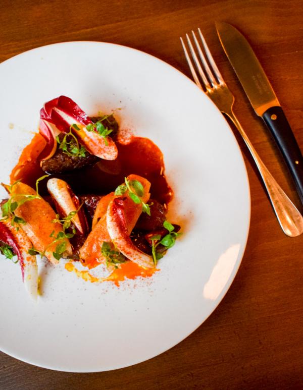 Si TOMY&co connaît un tel succès depuis son ouverture au début de l’automne 2016, c’est que son chef-propriétaire a su trouver une formule imparable pour séduire les gastronomes de tout poil, au déjeuner comme au dîner. Plutôt qu’un menu carte blanche imposé, le jeune chef a opté pour une carte lisible, où l’on pourra soi-même composer son menu : dès 25€ pour un déjeuner du marché en deux temps, à 45€ le soir pour un repas complet sans oublier le désormais incontournable « menu dégustation » à 65€ pour les plus curieux (et les plus gourmands). Cela peut sembler anecdotique mais on comprend immédiatement que Tomy Gousset, au-delà de ses talents de cuisinier, est également (avant tout ?) un restaurateur très attentif aux attentes des clients d’aujourd’hui. Voilà pour la forme.