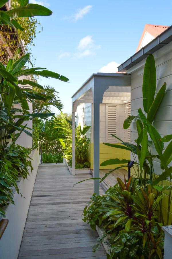 Les 21 clés — chambres, suites, lofts et villas d'exception — sont dispersées en contrebas le long d’un grand escalier en bois perdu dans la végétation tropicale. Avec leurs murs blancs et leurs toits rouges, les bungalows miment l’architecture typique léguée par les Suédois. Chacune possède une terrasse en bois avec une petite piscine et un Aquabike. Le sentiment d’intimité y est total et la lumière incroyable tout au long de la journée. Les architectes français Gilles & Boissier signent une décoration tropicale chic et apaisante : des teintes beiges avec quelques touches de couleurs, des claustras en bois, des détails en pierre, en teck, en lin et en coton. On a adoré les salles de bain et leurs produits L'Officine Universelle Buly 1803, et les touches de technologie qui facilitent la vie sans trop en faire : wifi survitaminé, rideaux occultant automatiques, toilettes japonaises, prises USB.