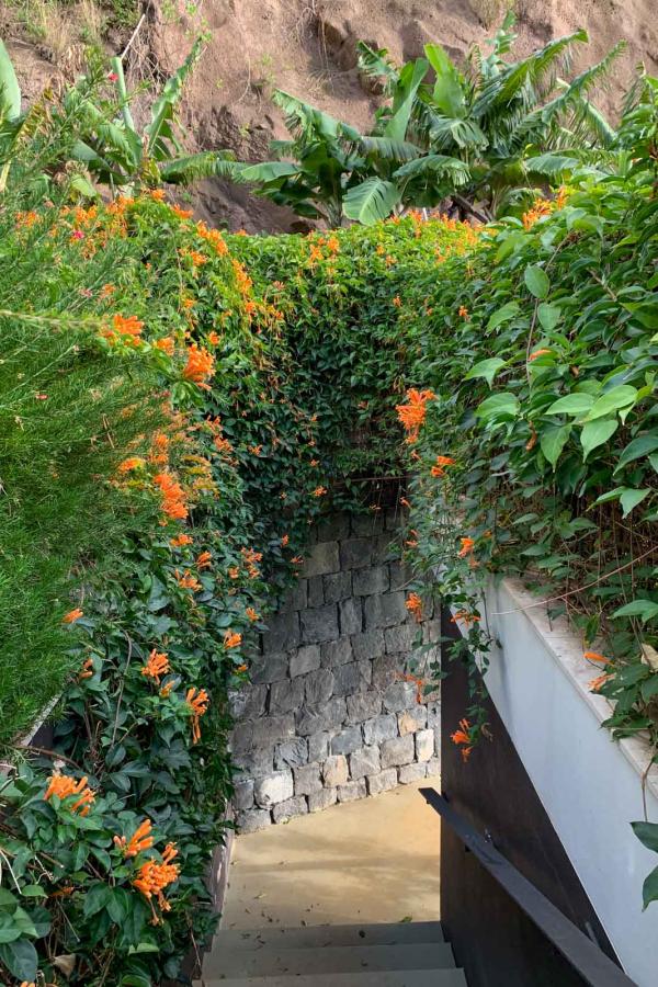 Un grand jardin fruitier et potager est planté au-dessus de l’hôtel, avec une vue sur l’océan, pour une balade ou un verre au coucher du soleil. Les cannes à sucre sont bien sûr présentes.