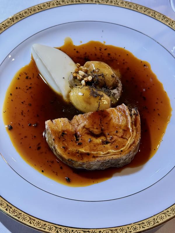 Les cuisines de L’Amphitryon, le restaurant gastronomique, accompagnées de l’historien culinaire Jean-Claude Ribaut, font revivre la table Grand Siècle, à l’instar de ce que l’on pouvait trouver à Versailles, dans un décorum digne du plus beau palais du monde : sculptures animalières, lumière des bougies et banquettes rouges moelleuses. Les hôtes sont servis en habit d’époque dans une vaisselle rutilante où cristal et porcelaine jouent les premiers rôles. Plus qu’un dîner, on vit une vraie immersion à la table du roi... et on s'y régale ! Le nouveau chef, Jeffrey Pestana, arrivé en 2024, joue une partition de cuisine étoilée inspirée. Le maquereau, par exemple, subit un traitement divin, rôti à la flamme et flanqué de zestes de bergamote et jus aux herbes fraîches, pour une entrée en matière digne des meilleures tables gastronomiques parisiennes. Mais le festival ne s'arrête pas là, avec l'autre entrée phare de la maison, végétarienne cette fois : un navet glacé décliné en plusieurs textures. Digne d'une cuisine de palace ! Les plats méritent tout autant l'attention des inspecteurs du Guide Michelin avec une sublime poitrine de veau braisée et jus de truffe ou encore ce sanglier en croûte, mousseline de cerfeuil tubéreux. Une maison qui sera sans aucun doute couronnée d'une étoile rouge dans les 2 ans à venir et s'affirme déjà comme une destination de choix pour un weekend gastronomique proche de Paris.