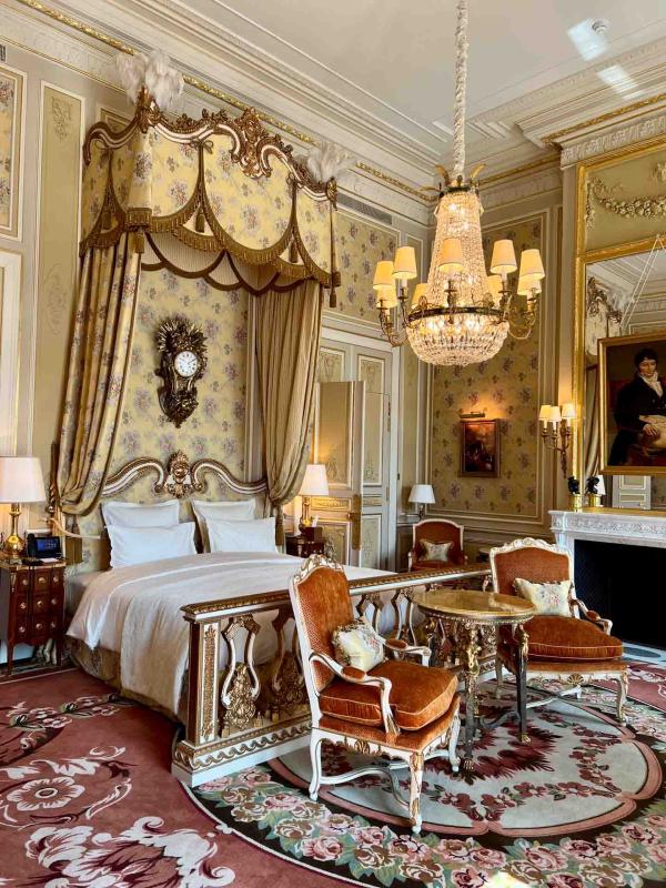 L’hôtel compte au total 142 chambres et suites habillées de boiseries fines, de tentures pastel, d’œuvres d’art, de salles de bain en marbre d’Italie baignées de lumière naturelle, équipées de baignoires et de vasques aux robinets dorés en forme de cygne… Avec une vue magistrale sur la place Vendôme, les Suites de Prestige rendent hommage aux hôtes illustres du Ritz Paris et restituent une ambiance qui leur est propre (Marcel Proust, Chopin, Charlie Chaplin, Ernest Hemingway, F. Scott Fitzgerald, Mansart, Prince de Galles, Windsor, César Ritz). Visitée par la rédaction, La Suite Impériale est un véritable chef d’œuvre de 218 m² où le mobilier d’époque Louis XIV, Régence, Louis XV, Louis XVI, Directoire et Empire, les tableaux anciens et les lits à baldaquin rappellent la magnificence du château de Versailles. Ses salons sont inscrits au titre des Monuments historiques et l’une de ses chambres est la réplique fidèle de la chambre à coucher de Marie-Antoinette.