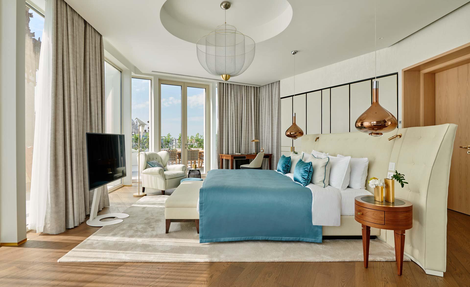 La rédaction a testé la Deluxe numéro 417. Toute de blanc vêtue, la chambre très élégante et confortable de 36 m² s’habille de tête de lit en cuir, de mosaïque dorée autour des miroirs dans la salle de bains en marbre, de draps en coton égyptien et d’une douche à effet pluie… Au dernier étage, deux magnifiques suites présidentielles surplombent la ville. Visitée par la rédaction, la Suite présidentielle Paris de 291 mètres carrés est dotée de trois chambres, de lits King, d’un salon, d’un parquet chevron, d’une terrasse, d’un spa privé avec hammam, sauna et d’une vue à couper le souffle sur la ville.