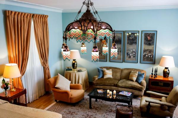 Plutôt que de chambres, l’Albergo préfère évoquer fièrement ses 33 suites, « déployées sur une superficie de 3,300 m2 », ce qui donne une idée de l’espace fourni aux hôtes de l’établissement. Ajoutez à cela des hauteurs de plafond démesurées, un confort sans pareil (coin salon, salles de bain en marbre de Carrare, literie de classe mondiale) et une décoration colorée (rose loukoum, bleu Méditerranée, ocre du désert…), mélangeant habilement influences orientales (portique et lustres ottomans, tapis, moucharabieh, etc.) et mobilier chiné aux quatre coins du Liban, du Moyen-Orient ou d’Europe pour avoir une idée du résultat. Difficile, en effet, de ne pas se sentir comme chez soi dans ces suites au luxe intemporel et à l’opulence discrète.