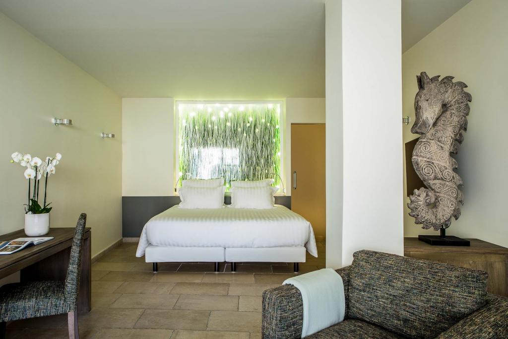 Nos chambres favorites ? Les Junior Suites numéro 21 à 25 pour leur calme et la vue, en plus de leur proximité du spa, des piscines et du restaurant italien. À noter enfin, la chambre 101, qui se trouve dans une petite maison de village restaurée et pleine de charme. Un cadre assez idyllique avec terrasse donnant sur les allées de l’hôtel et les buissons de romarin et herbes aromatiques.