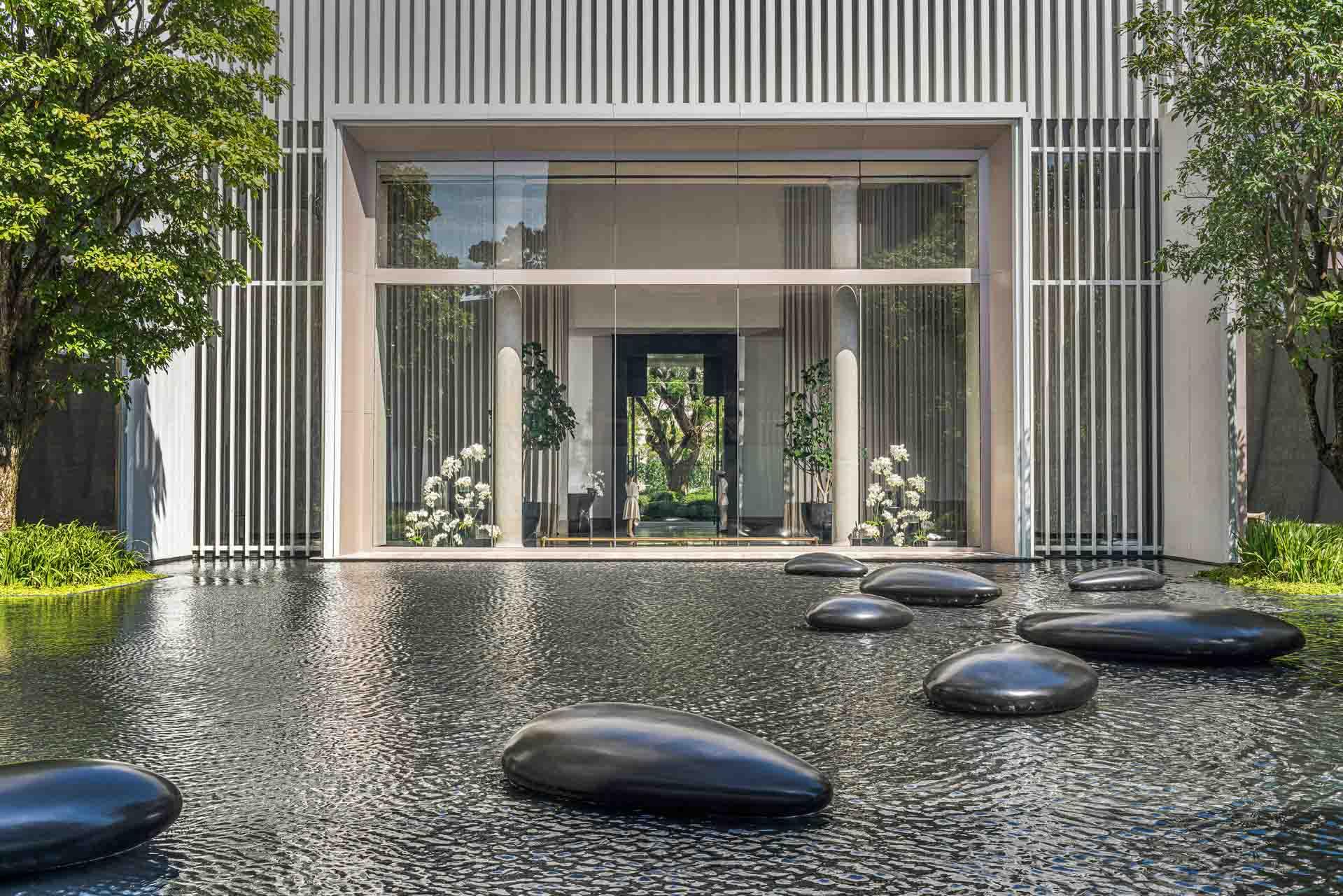 Dans une ville de 24 millions d’habitants où l’humidité évolue tout au long de l’année entre 40-80% et les températures entre 32 à 42°C, on comprend pourquoi cet hôtel a été façonné tel un zen palace avec ses transitions intérieures-extérieures. Pas besoin de sortir de ce city-resort où l’on retrouve un condensé de la vie urbaine en version miniature. Envie d’Italie ? Cap sur « RIVA », l’excellent restaurant italien au look inspiré par le lac de Côme, supervisé par le chef Andrea Accordi. La France vous manque ? Direction « Brasserie Palmier » et son bar à huîtres niché dans un décor tropical-chic. Envie d’un capuccino ou d’un macaron ? « Café Madeleine » est la destination.