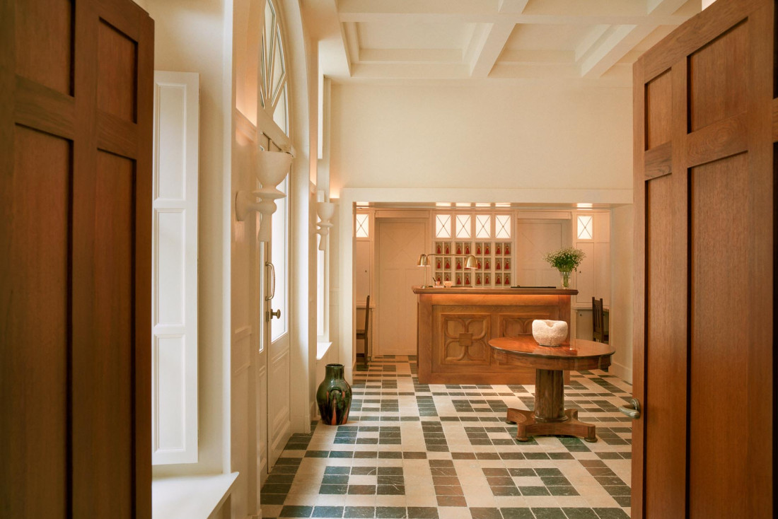 Le restaurant s’appelle Emil, non par familiarité, mais comme pour devenir un ami. Il en a la simplicité, conservant les codes d’une jolie brasserie parisienne, avec son comptoir rutilant, ses banquettes rebondis. Il cherche à étonner, à travers une carte qui convie la Méditerranée tout en distillant des saveurs venues tout droit d’Asie. C’est ici aussi que les clients de l’hôtel se retrouvent du petit déjeuner au dîner, avant, peut-être, de s’aventurer à La Coquille d’Or, un bar comme un club anglais dissimulé en speakeasy où il fait bon s’éterniser. Pour un peu et on le manquerait, ce petit spa caché sous les murs voûtés : un sauna, un bassin comme un écrin, que l’on peut même privatiser. Et pour les soins ? Ce sera dans l’intimité de la chambre.