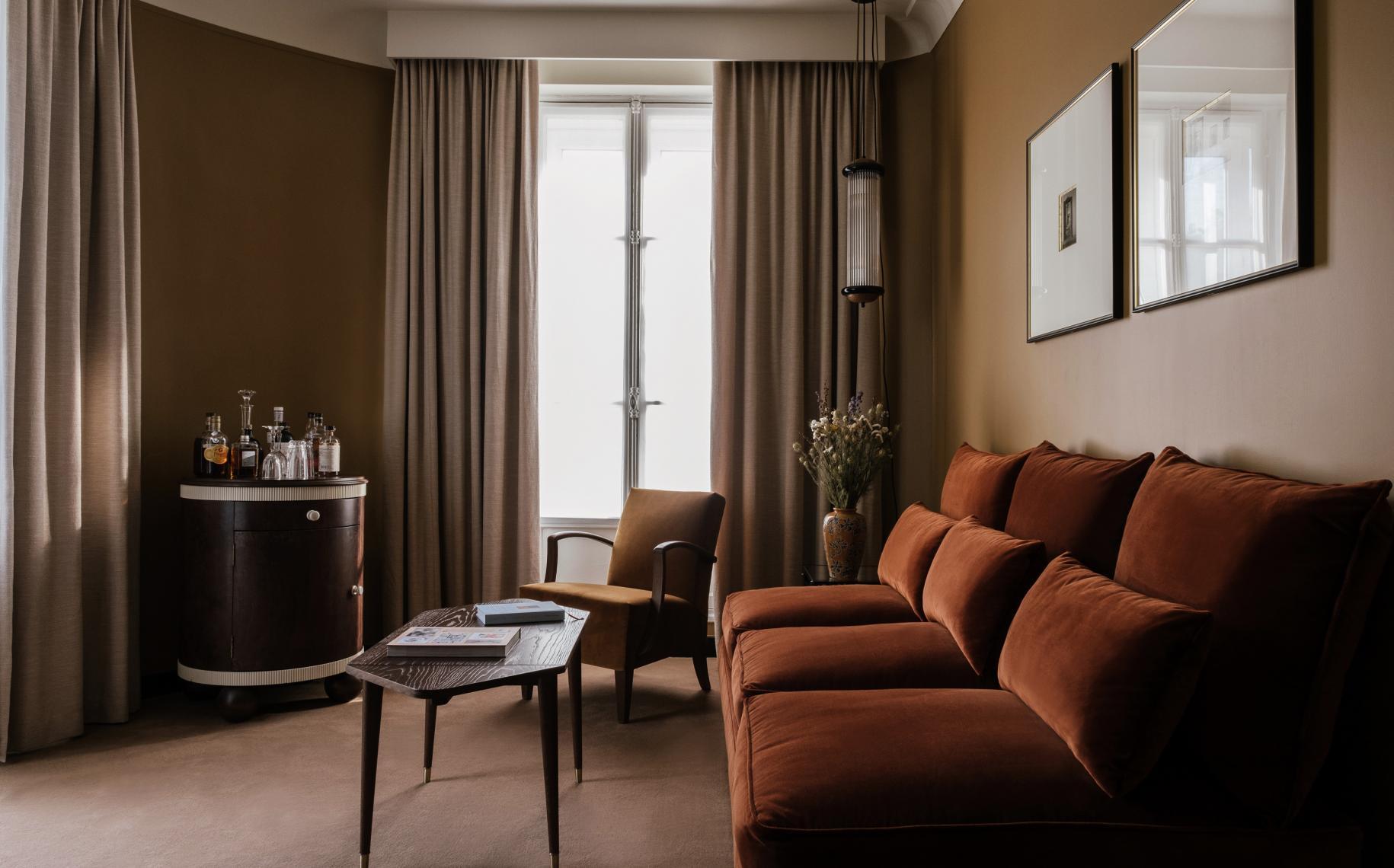 Derrière sa double façade flamande en brique et classique en pierre de taille se cache un hôtel 4-étoiles pensé par l’architecte Thomas Vidalenc et son épouse hôtelière Julia Vidalenc. D’inspirations multiples — la bande dessiné et ses pays imaginaires comme la Syldavie de Tintin, l'esthétique de la ligne claire chère à Hergé, l'Europe de l'Est des années 1960 —;, les 37 chambres partagent un esprit vintage coloré, un mobilier slave et de magnifiques terrazzo dans les salles de bain. Certaines possèdent même des terrasses végétalisées depuis lesquelles entrevoir le patio au rez-de-chaussée, espace extérieur du restaurant à la carte bistrotière signée Michaël Riss.