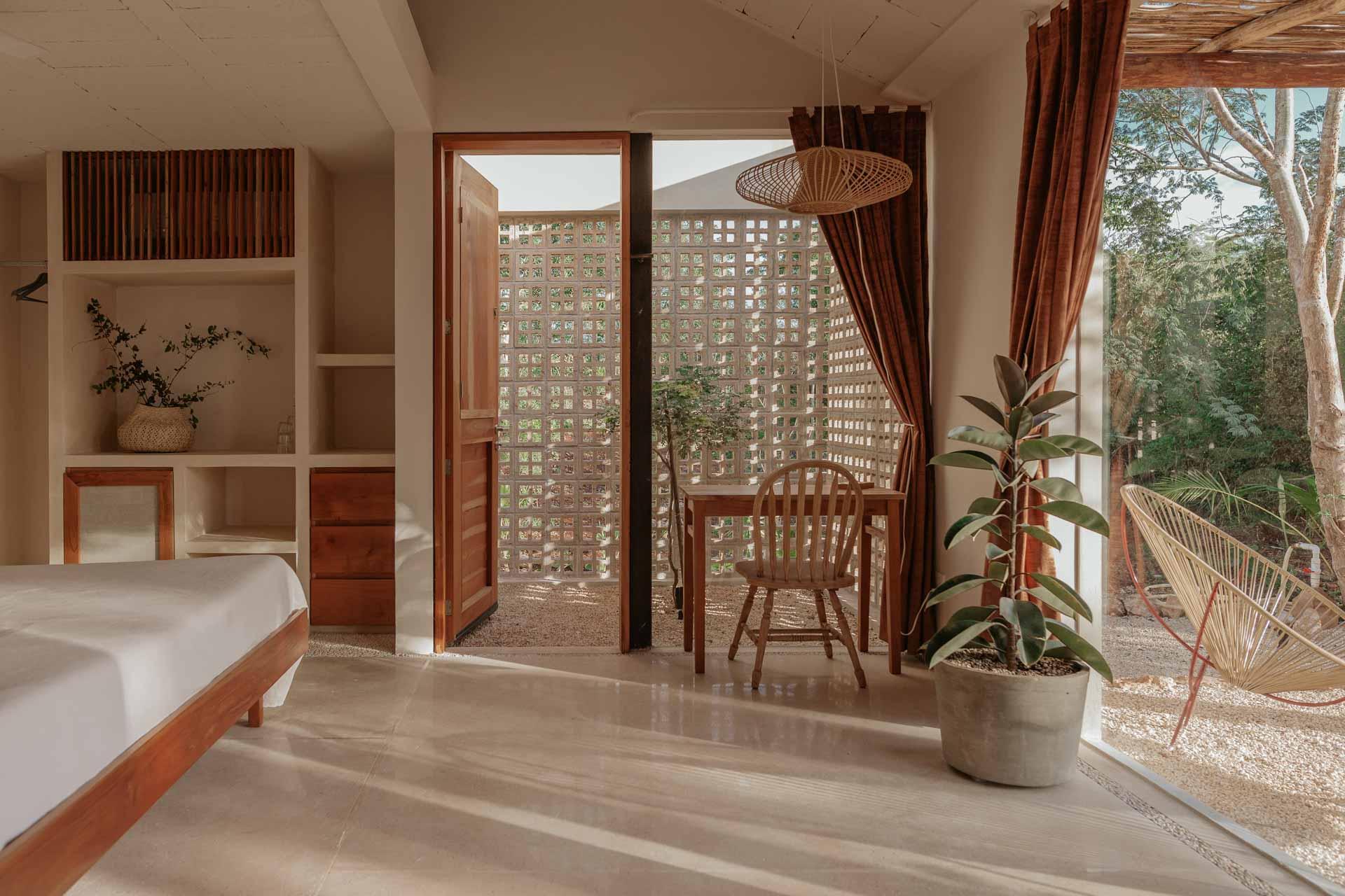 Lancée par Elisa et Guillaume, un couple franco-mexicain, cette maison d’hôtes plantée au coeur d’un parc écologique a été conçue dans le pur style mexicain. L’auberge se pare de tapis en palme, de masques, de plantes endémiques et de meubles chinés en cèdre qui apportent un parfum léger à l’espace. Toutes les chambres jouissent d’une terrasse ou d’un porche privé pour lire ou accueillir le silence. L'esthétique épurée et l’atmosphère chaleureuse de la maison assurent un séjour immersif dans la jungle yucatèque.