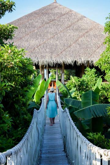 Il faut un peu de temps pour apprécier à sa juste valeur Soneva Fushi. D’abord, parce que l’île est nettement plus vaste que celles de la très grande majorité des resorts maldiviens avec 1,6 kilomètres de longueur pour plus de 400 mètres de large. Mais surtout parce qu’elle ne ressemble à aucune autre avec sa végétation luxuriante, ses allées à sillonner les allées en vélo, en se faufilant entre le bestiaire autochtone (lézards, poules d’eau, chauve-souris) et les lapins - introduits d’Europe - gambadant tranquillement d’un bout à l’autre de l’île.