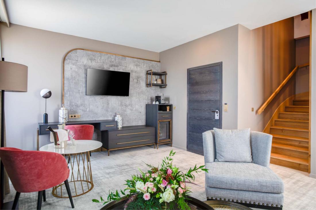 - D’abord, la décoration. L’architecte d’intérieur Caroline Tissier signe pour l'hôtel Fleur de Loire une réalisation magistrale. Tons contemporains gris poudrés, bleus canard, variations de blancs et beiges dans les chambres et suites, deux salles de restaurants lumineuses dont chaque élément rappelle la Loire, un bar coloré paré de magistraux piliers d’époque, une piscine extérieure, un long couloir de nage intérieur et un spa superbe. L’ensemble est tellement réussi que dès que l’on pénètre dans une pièce, on se trouve en proie à un nouvel effet « wahou ». L’immense bâtiment en U (5,000 m²) du XVIIe siècle, autrefois hospice, en impose tant du dehors que de dedans, et ce, sans aucune fausse note.
