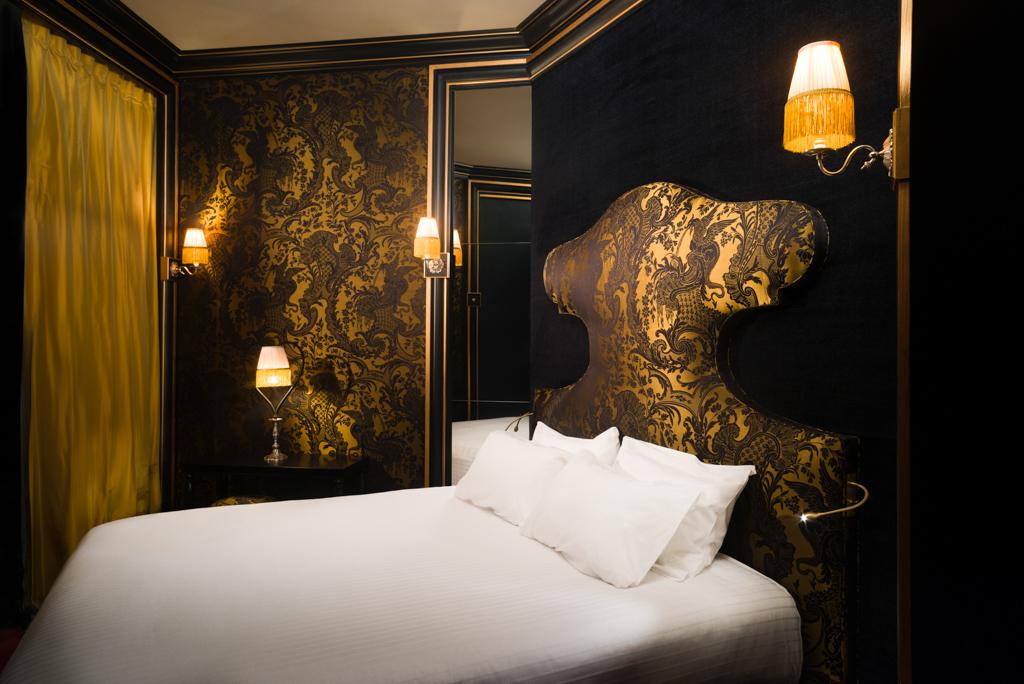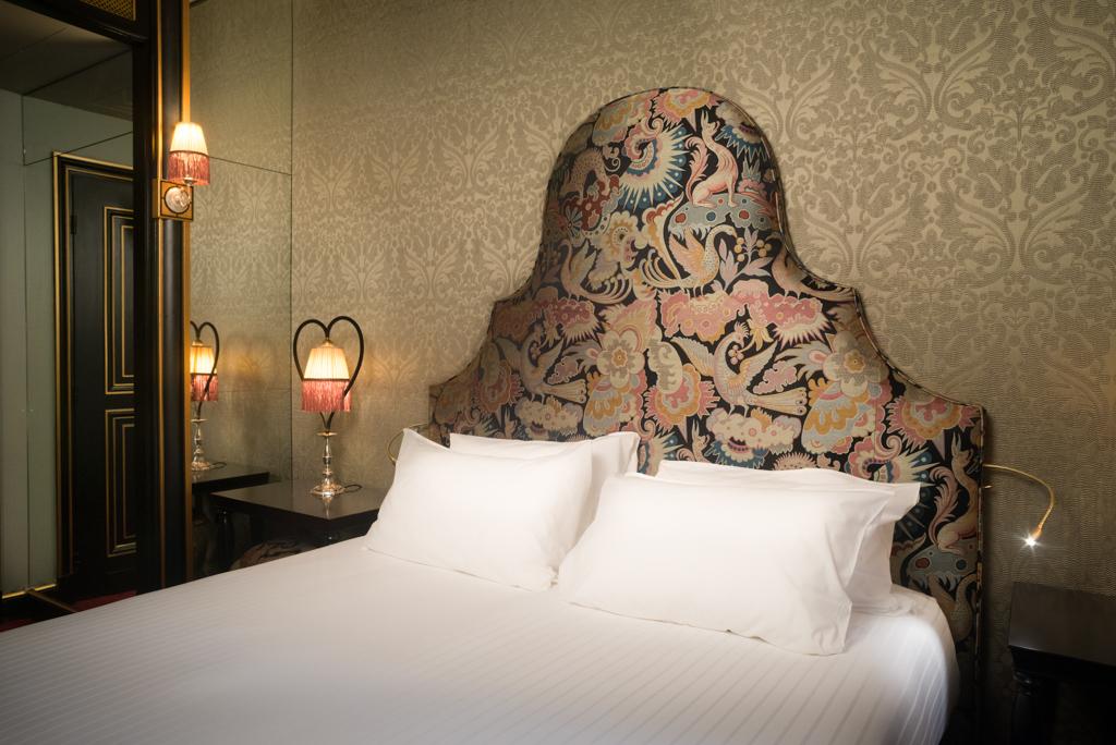 Dans les chambres, on retrouve le style imaginé par Jacques Garcia pour l’occasion : fastueux, chatoyant et singulier (la décoration de chaque chambre est unique).