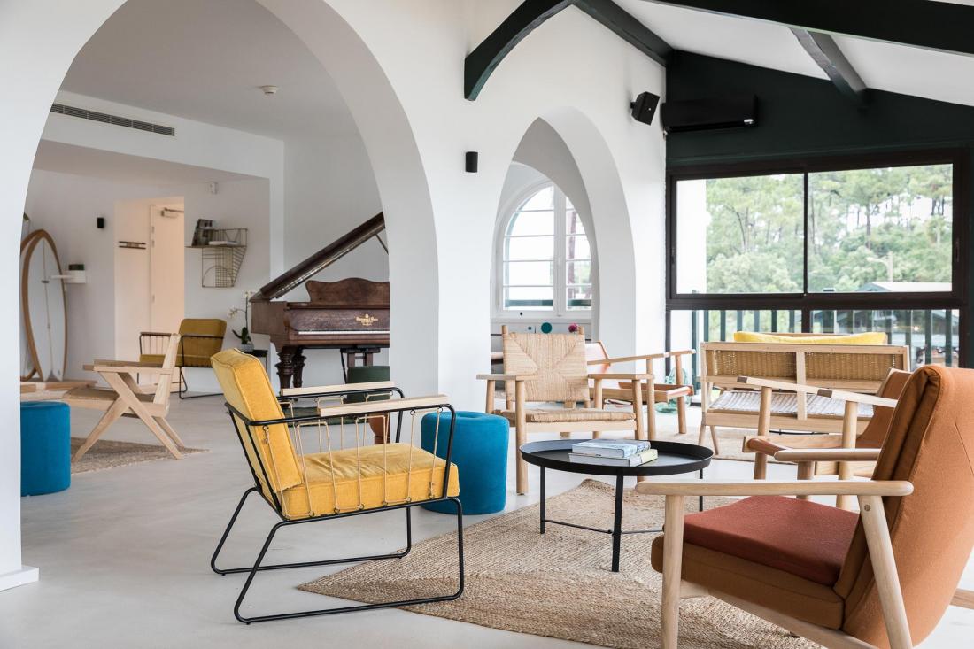 - Ici, l’ambiance se veut décontractée, s’inspirant de l'esprit surf local, de l’Art Déco landais et des surf hotels des Hamptons, avec grands murs blancs, matériaux clairs et naturels. Situé au bord du lac d'Hossegor, l'hôtel est quelques minutes de marche des immenses plages de l'Atlantique ce qui en fait un camp de base idéal pour s’adonner au... surf !
