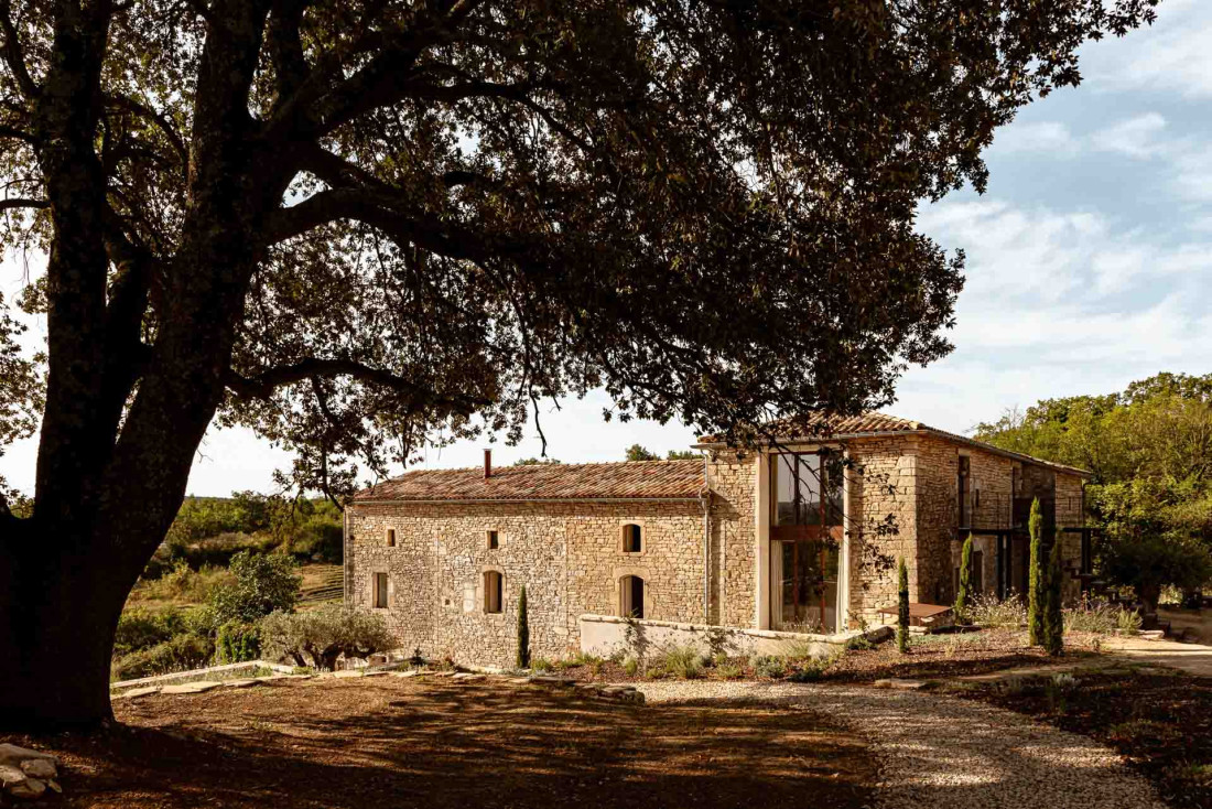 - Un lieu de vie et de partage : Marc et Rémi ont changé de vie, quittant Paris pour la douceur de vivre en Occitanie. Tombés sous le charme de ce Gard méconnu et d’une ferme en pierres dorées à une heure d'Avignon, ils ont entrepris un vaste chantier de rénovation et peaufiné les moindres détails de leur maison et de leur reconversion. En ce printemps 2024, ils ouvrent donc 5 chambres et deux maisons d’hôtes dans leur propriété de 4 hectares au milieu de la garrigue et des champs de lavandin. Mêlant ancien et contemporain, ce joli mas affiche un charme certain. À l’intérieur, poutres en bois et murs en pierre ou en plâtre, mobilier chiné ou design pointu, détails déco dans l’air du temps se retrouvent dans les belles et vastes chambres avec terrasse ou sous les toits, mais aussi dans le salon de détente et cinéma aménagé dans l’ancien poulailler ou la salle à manger installée dans la cave voutée. Marc propose en effet le soir une table d’hôtes à base de produits frais et locaux et le four à pain accueillera des soirées pizza. A l’extérieur, de multiples espaces, petites tables et transats invitent à la détente : dans la cour centrale dès l’heure du petit-déjeuner, à l’ombre du grand chêne, ou sur la grande terrasse de la piscine. A disposition également : l’incontournable terrain de pétanque et des vélos à louer. Et pour les amateurs de glamping estival, une tente sera installée en surplomb des restanques pour vivre une nuit sous les étoiles avec lever de soleil sur le Ventoux au petit matin…