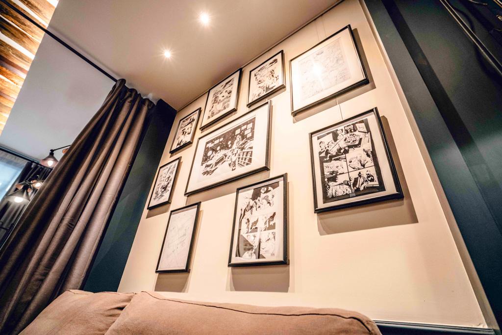 Également accrochées aux murs, des planches originales de BD signées d’auteurs majeurs comme Frank Miller