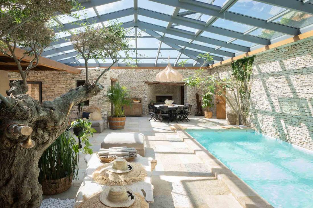 - À côté de la villa, une pièce au toit entièrement vitré comme une immense serre, abrite la piscine intérieure chauffée, véritable immersion dans le ciel azuréen de la Corse, ce qui permet également de l'utiliser en hiver. Les confortables canapés et la bibliothèque invitent à la lecture, tandis que les trois magnifiques suites — avec leurs salles de bains en marbre précieux — réservent des nuits des plus agréables aux six invités. Dans cette villa haut de gamme de 420 m², le luxe prend une nouvelle dimension, offrant une indépendance totale sans compromis avec les prestations quatre étoiles d'un hôtel de luxe en Corse. Pour couronner le tout, Ricardo et Sara, majordome et femme de chambre, sont toujours présents pour faciliter la vie aux hôtes.